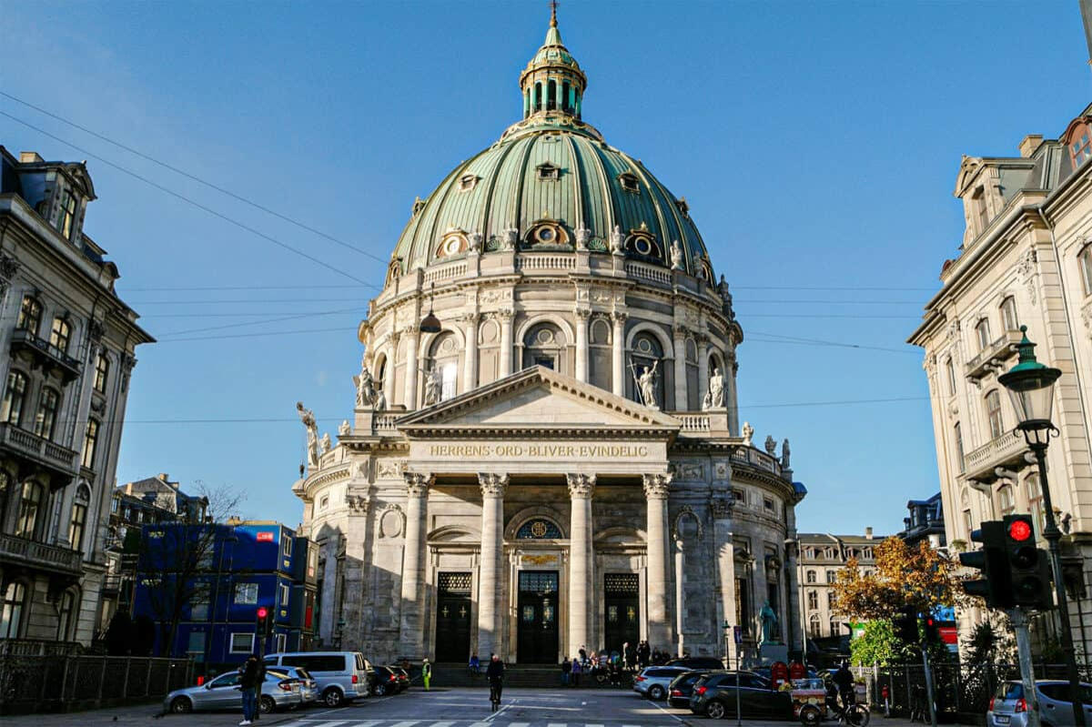 Frederiksgade qui la relie à l’Amalienborg. Elle a été consacrée en 1894. Elle est entourée de 14 statues en bronze d’hommes