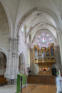 deux bas-côtés, d’un transept et d’une abside terminée par un chevet pentagonal. A l’origine, le chœur et la nef étaient simplement