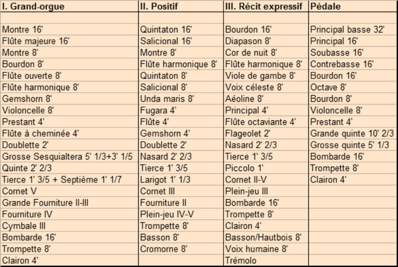 Accouplements : I/I (16, 4') - II/I (16, 8, 4') - III/I (16, 8, 4') - III/II (16, 8, 4')